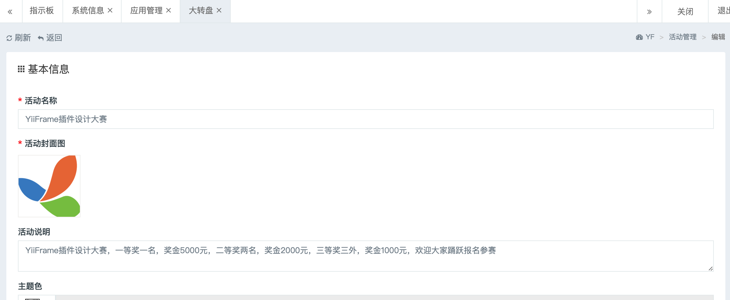 当前位置: 首页插件市场官方插件 大转盘 admin 官方插件 4 年前 0 99 声明:本站所有文章,如无特殊说明或标注,均为本站原创发布。任何个人或组织,在未征得本站同意时,禁止复制、盗用、采集、发布本站内容到任何网站、书籍等各类媒体平台。如若本站内容侵犯了原著者的合法权益,可联系我们进行处理。 admin终身VIP 收藏 海报分享