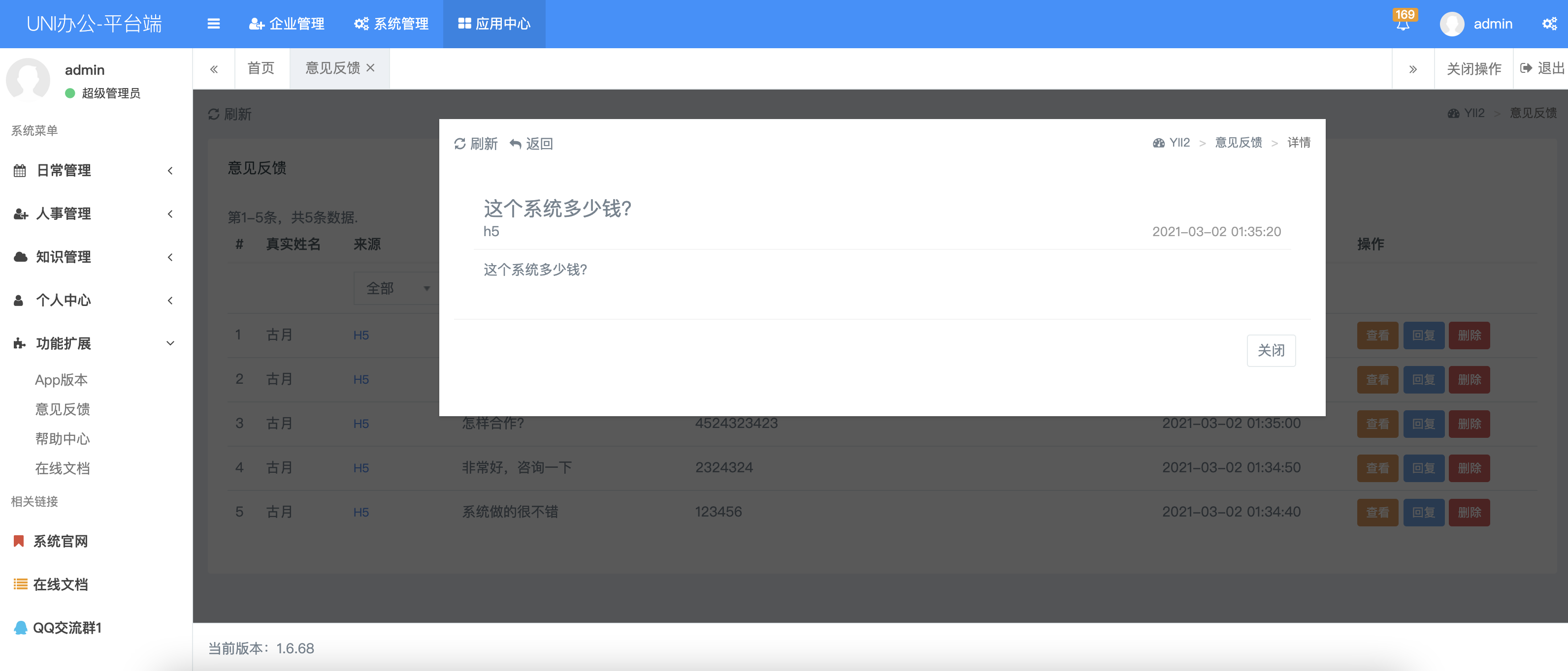 当前位置: 首页插件市场全部 意见反馈 admin 全部 5 年前 0 67 平台管理模块,用于收集用户反馈意见,支持手机端接口调用。 声明:本站所有文章,如无特殊说明或标注,均为本站原创发布。任何个人或组织,在未征得本站同意时,禁止复制、盗用、采集、发布本站内容到任何网站、书籍等各类媒体平台。如若本站内容侵犯了原著者的合法权益,可联系我们进行处理。 admin终身VIP 收藏 海报分享
